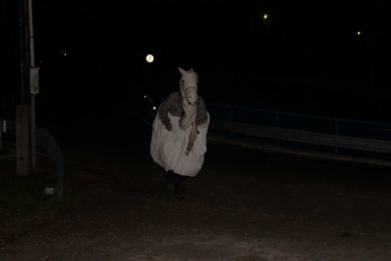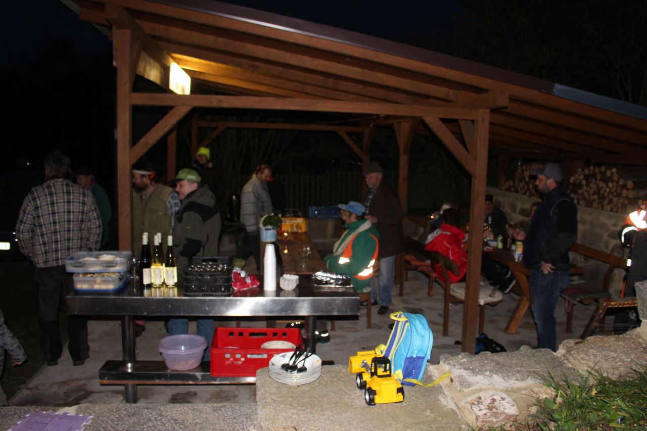 Husu si každý zbaštil doma, my na odlehčení jsme vařili brambory s tvarohovou pomazánkou, vylepšené škvarečkami, bramboráky, výtečnou knedlíčkovou polévkou...a ostatními dobrotami. ...Po setmění dorazil Martin na bílém koni, ale po sněhu ani památka a tak si cestář Míreček posolil silnici, aby bylo tradici učiněno zadost.