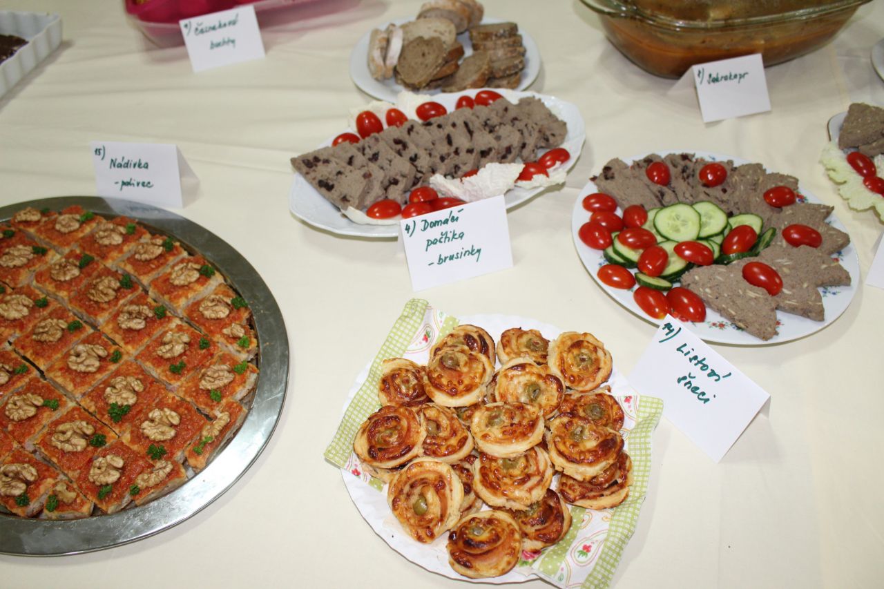Tradiční podzimní ochutnávka dobrot měla spoustu zajímavých a kreativních pokrmů, např. Sakrakapr, Dalmatin,Ohnivé topinky,Regionální roláda, Mňamka pod pivo, Koníček, JednoKubky (to není překlep).....Vše bylo výborné, bodové ohodnocení bylo velmi těsné. Zhruba  65 návštěvníků vykouzlilo 29 rozmanitých pokrmů. Vítězství si odnesla paní Radová za Ožralé minivdolečky a M. Kruntová za Prvorepublikovou škvarkovo-vajíčkovou pomazánku. Večer nám zpestřila svým vystoupením skupina Australianbuš-kovice.