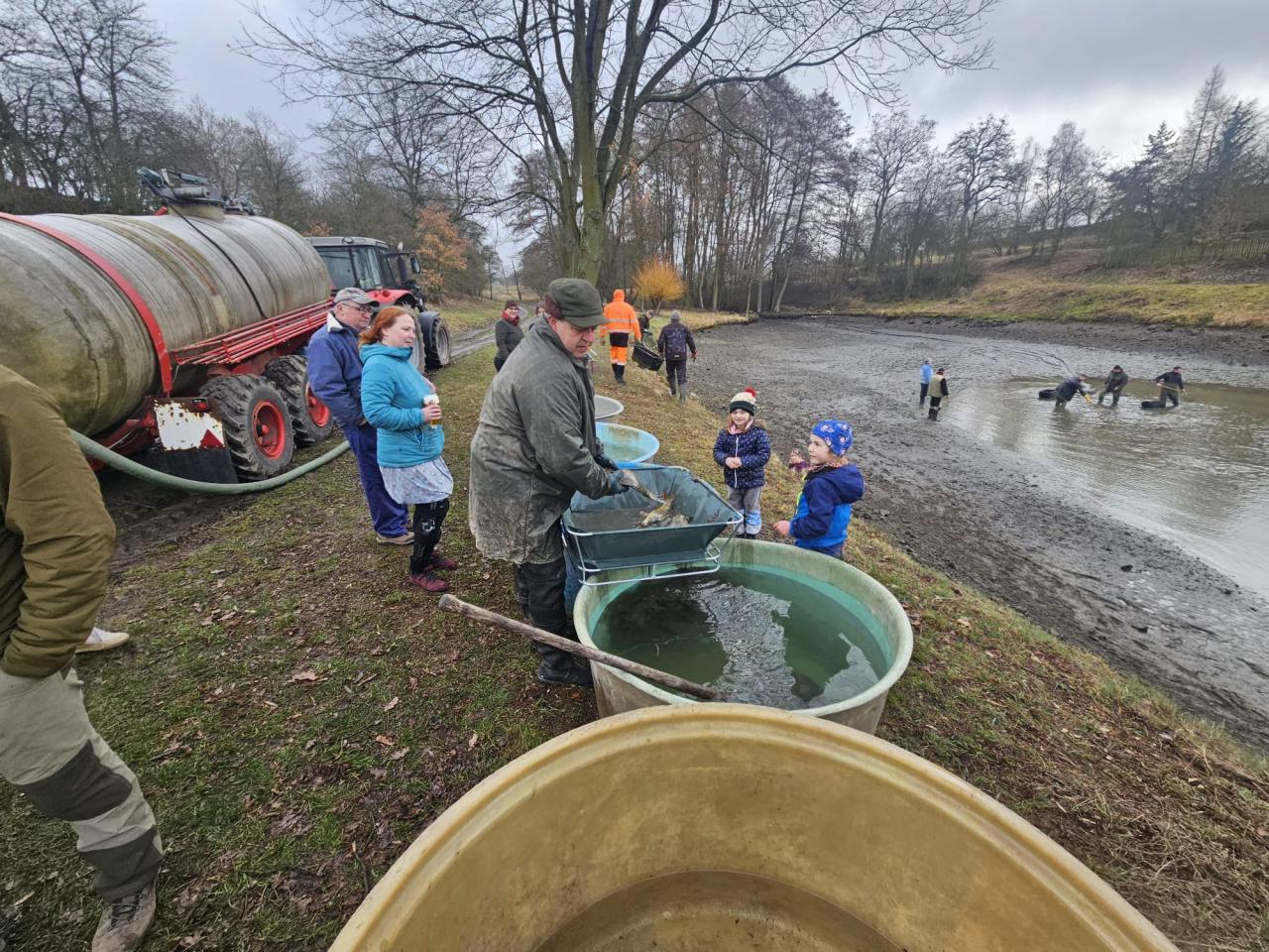Výlov rybníka se uskutečnil v sobotu 2.3.2024 za účelem zjištění stavu rybí obsádky.